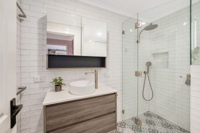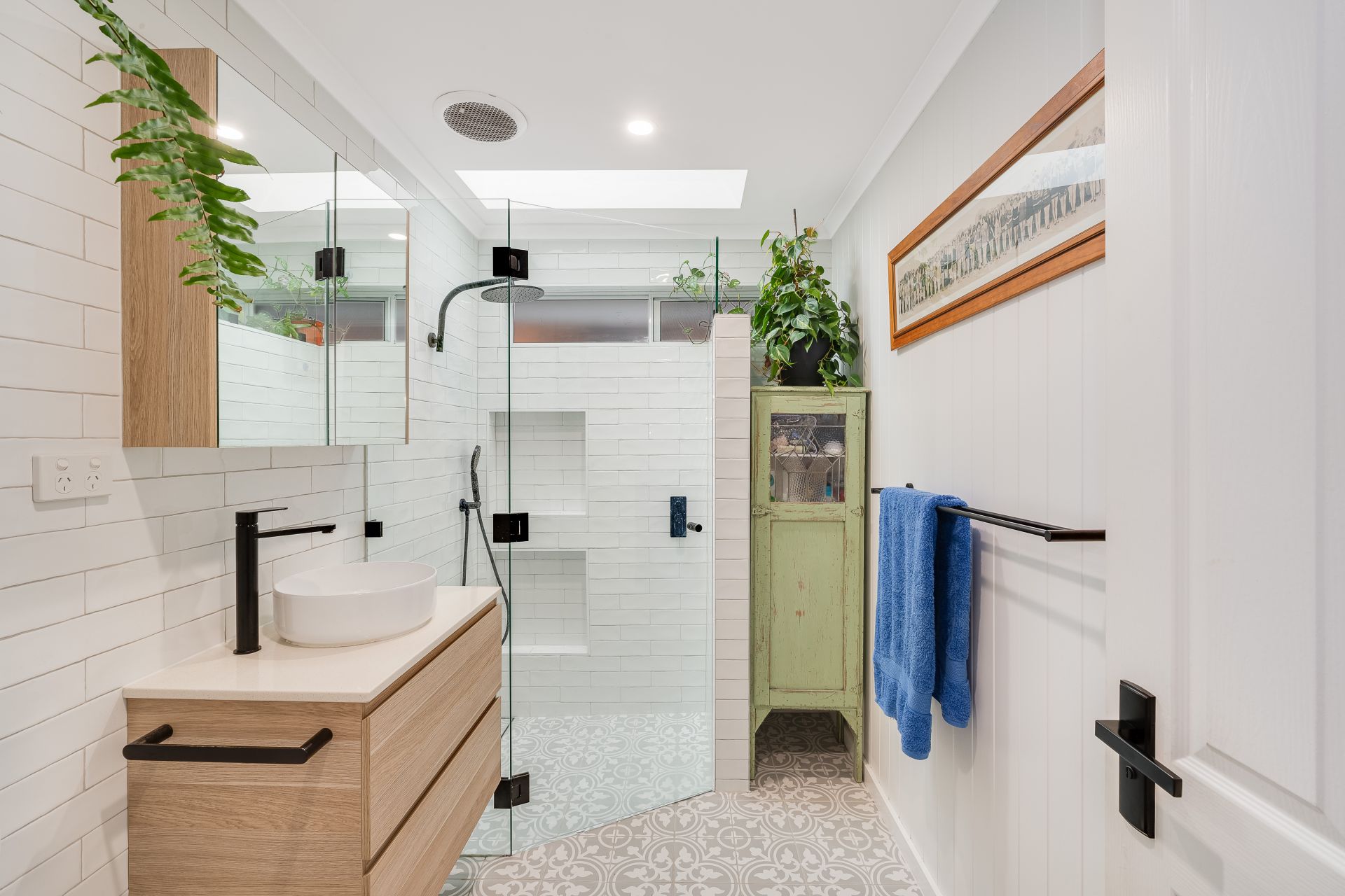 - Two bathrooms with showers and eye-catching tile selections, external laundry