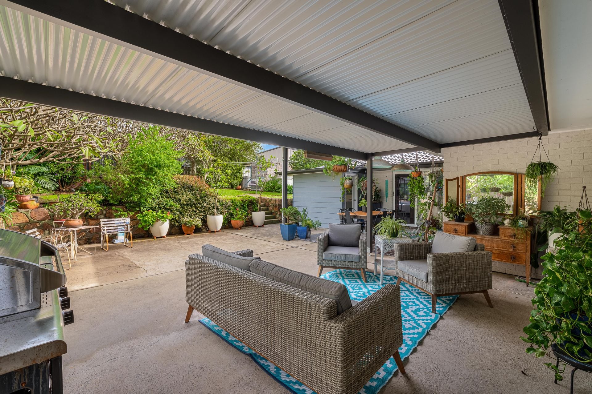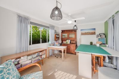 The use of colour and designer wallpaper imported from England adds flair throughout, while the layout delivers practicality featuring three robed bedrooms, two stylish bathrooms, and a spacious gas kitchen that anchors the home with ease. Outside, the lush backyard is a private wonderland curated by a green-thumbed gardener making it perfect for entertaining or letting kids roam. A separate 3.5m x 4.5m carpeted studio adds serious versatility for work, hobbies, or independent teens.