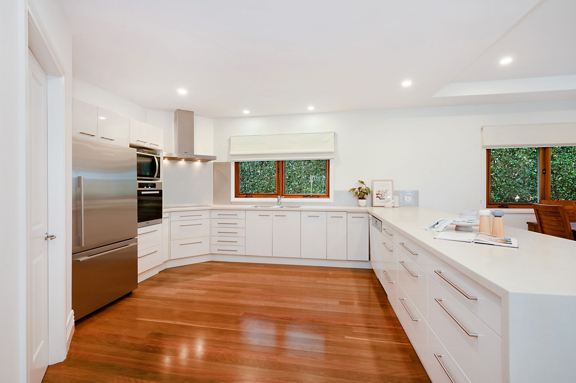 - Caesarstone kitchen with Miele induction cooktop, wall oven, dishwasher, walk-in pantry